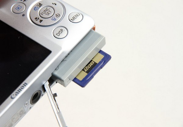 Di sebelah kanan kamera terdapat penutup karet yang melindungi slot A/V Out – Digital. Slot ini berfungsi untuk menghubungkan kamera ke televisi atau ke komputer. Penutup karet yang melindungi slot ini terasa sangat ringkih dan rentan. Kami tidak menyarankan sering-sering menggunakannya.