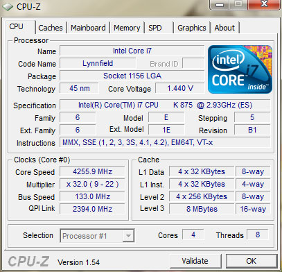 Dengan heatsink yang kami gunakan, kami berhasil menaikkan clock speed Core i7 875K hingga 4256 MHz (32 x 133 MHz). Saat meng-overclock, kami mematikan fungsi EIST dan Turbo Boost.