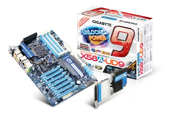 Taipei, Taiwan, May 12, 2010 – GIGABYTE TECHNOLOGY Co., Ltd, a leading manufacturer of motherboards, graphics cards and computing hardware solutions is proud to unleash their latest monster performance GA-X58A-UD9 motherboard, featuring a revolutionary new 24 phase Unlocked Power design, 4-way graphics support including NVIDIA® SLI™ and ATI CrossFireX™, as well as a host of unique GIGABYTE features such as 333 Onboard Acceleration and On/Off Charge.
