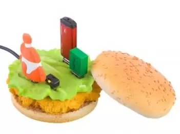 Bosan dengan bentuk hub USB yang biasa-biasa saja? Akhir bulan April, portal usb.brando.com baru saja mengeluarkan alternatif unik yang menyegarkan sekaligus berpotensi membuat Anda lapar: sebuah hub USB berbentuk burger ayam (chicken burger)! Sesuai namanya, Chicken Burger USB HUB memiliki bentuk yang sangat mirip dengan burger berisi daging ayam, lengkap dengan daun selada dan roti tiruan yang bisa dibuka-tutup untuk menancapkan peripheral USB Anda.