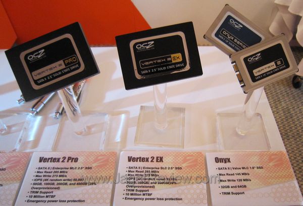 OCZ juga memiliki SSD yang memiliki emergency power loss protection: Vertex 2 Pro dan Vertex 2 EX. Sedangkan di sebelah kiri adalah OCZ Onyx  dan Vertex 2 yang hadir dalam ukuran lebih kecil: 1,8″.