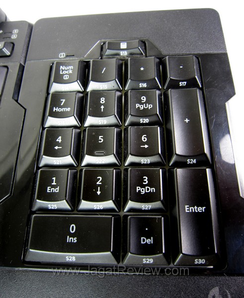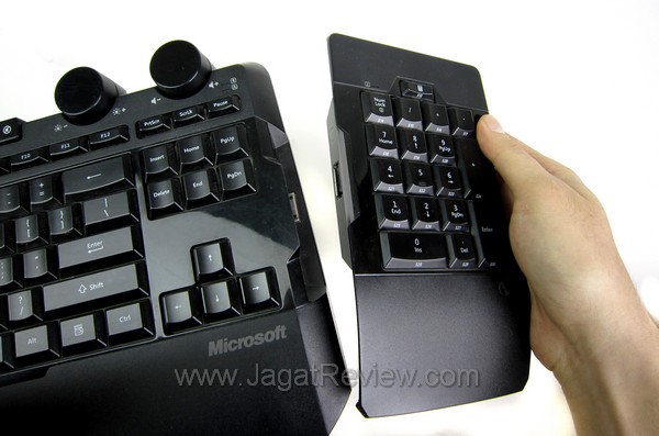Ngomong-ngomong soal numpad, ada yang menarik dari numpad Sidewinder X6: bagian ini bisa dilepas sehingga membuat mengecilkan ukuran keseluruhan keyboard! Cara melepasnya cukup mudah, karena Anda tidak harus repot-repot membuka mekanisme pengunci apapun. Unit numpad hanya “menempel” dengan dibantu magnet. Alhasil, mencopotnya terasa semudah mematahkan sebatang cokelat. Memasangnya kembali pun sangat mudah, dan Anda tidak perlu khawatir akan merusak keyboard ini karena konstruksinya terlihat cukup kokoh. Bagian numpad juga dapat dipasang di sisi kiri keyboard.
