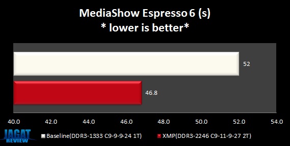 Dengan menggunakan DDR3-2246Mhz ini, terdapat peningkatan rata-rata sebesar hampir 10% dari ketiga aplikasi benchmark real-life. Nilai ini cukup signifikan mengingat peningkatan performa yang terjadi hanya disebabkan oleh memory kit dan bukan peningkatan CPU clockspeed.