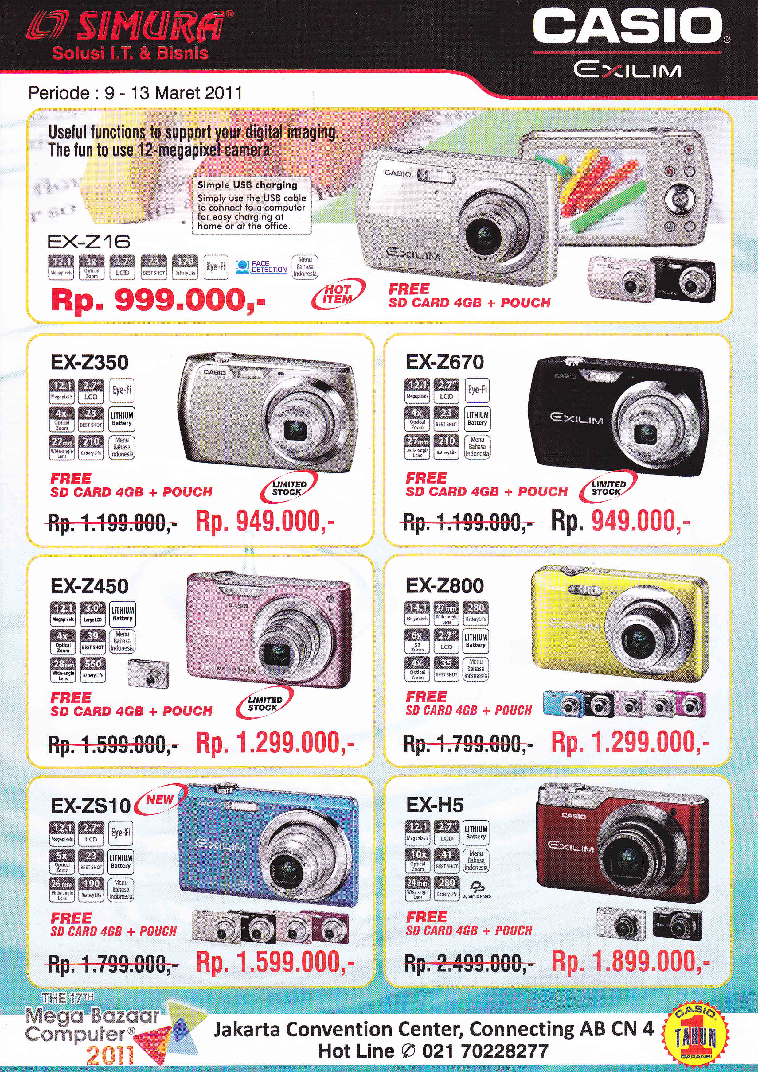 - EX-Z670:Rp1.199.000,- menjadi Rp949.000,- (+free SD Card 4GB + Pouch)