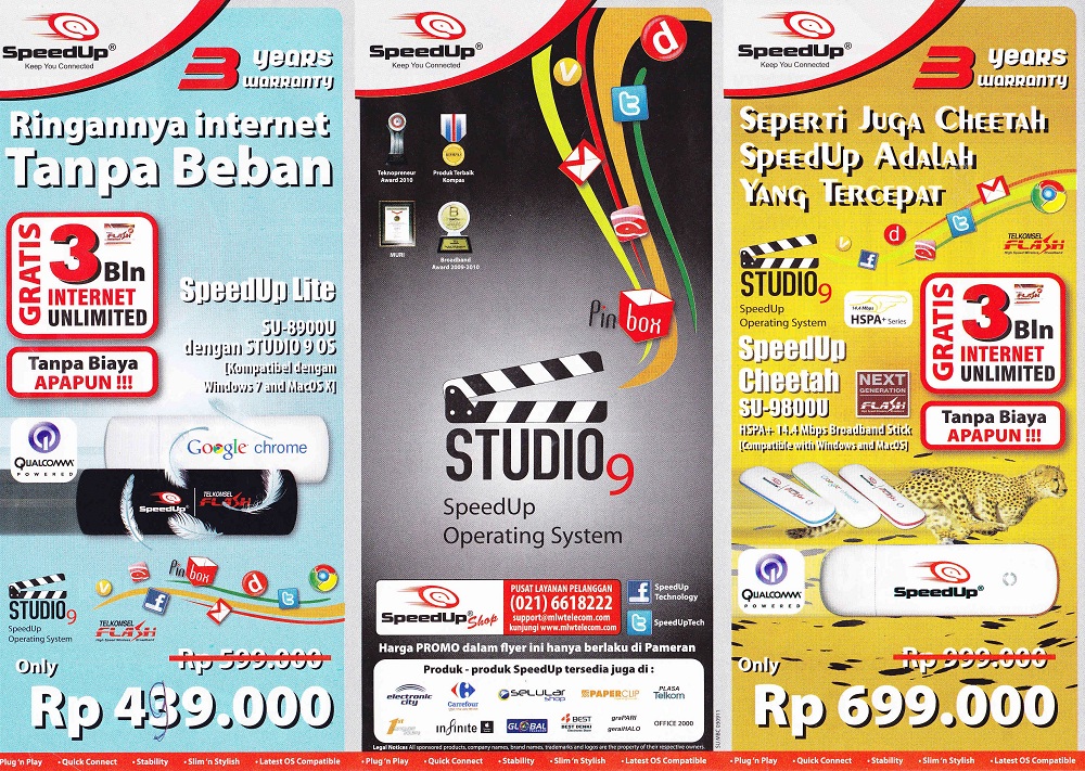 - SpeedUp Cheetah: Rp999.000,- menjadi Rp699.000,- (+free unlimited internet access selama 3 bulan).