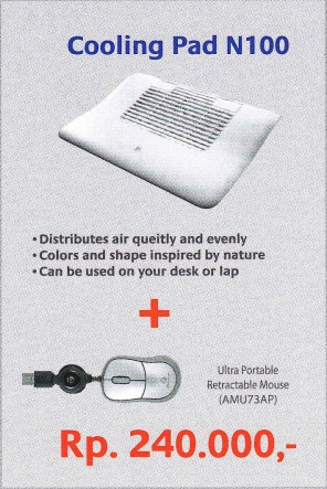 Anda bisa mendapatkan Cooling Pad N100 + Ultra Portable Retractable Mouse dengan harga Rp240.000,-.