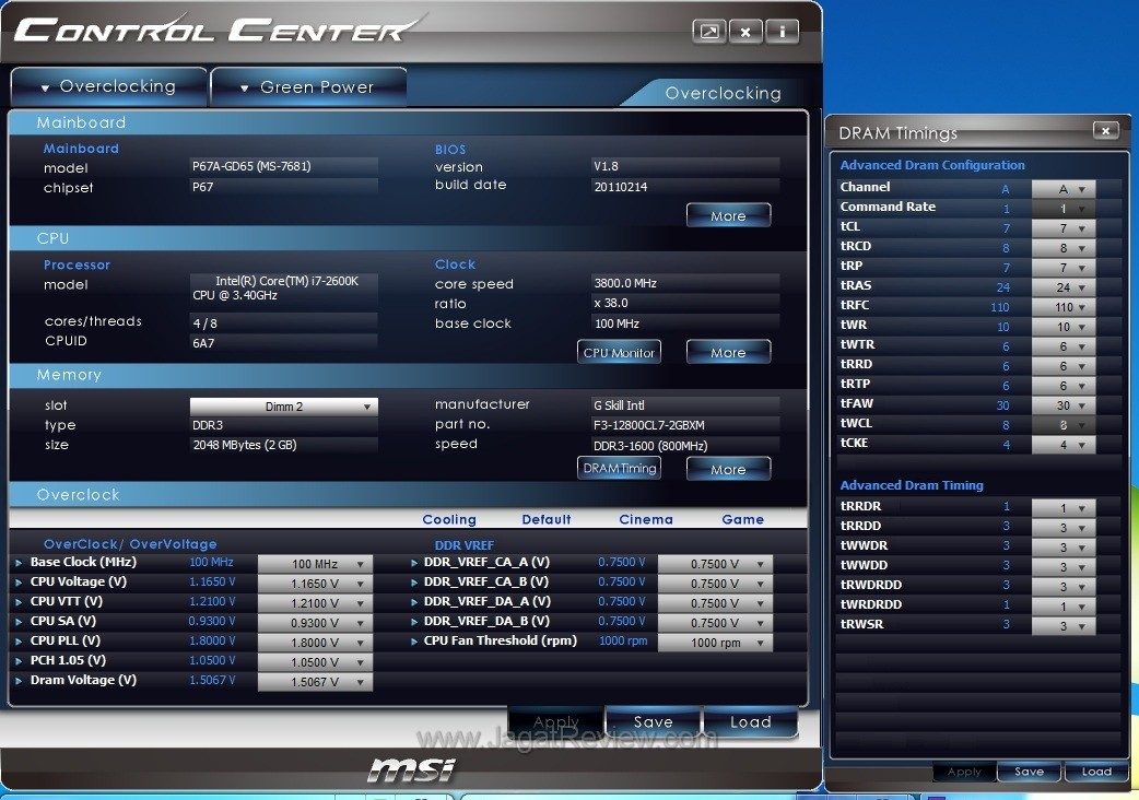 - Prosesor : Intel Core i7 2600K @ 3800Mhz ( 38 x 100)