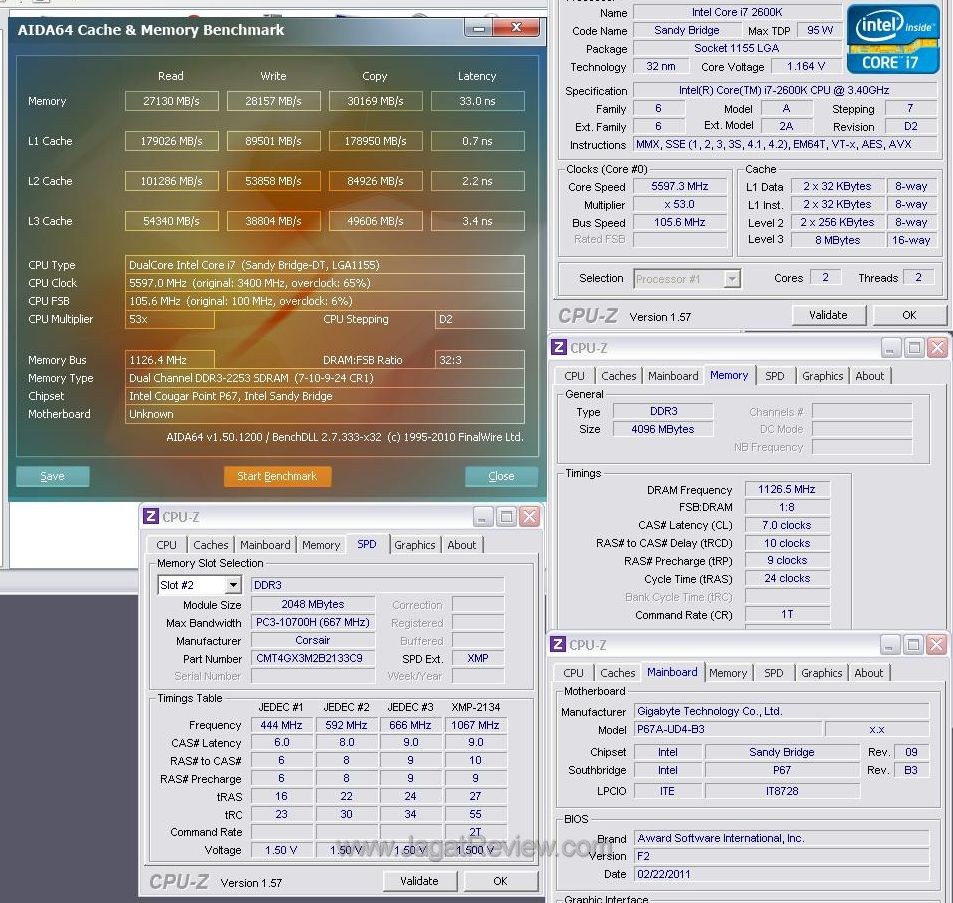 Kami berhasil mendapat lebih dari 27 GB/s Read bandwidth dengan konfigurasi DDR3-2252Mhz, CL7-10-9-24 1T. Ketika konfigurasi ini kami gabungkan dengan CPU i7-2600K yang berjalan di hampir 5.6Ghz, kami berhasil mencatatkan waktu 6 m 02.938 s di benchmark SuperPI 32M kami.