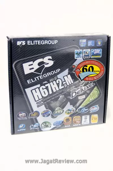 Kemasan wakil dari ECS bisa dikatakan berkesan elegan. Dengan latar belakang hologram, kesan mewah terpancar dari jajaran Black Series yang mengusung chipset H67 ini.