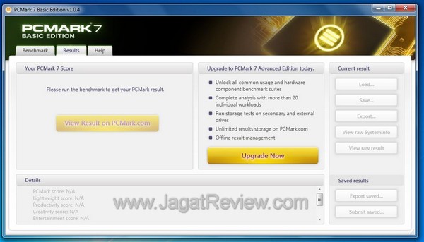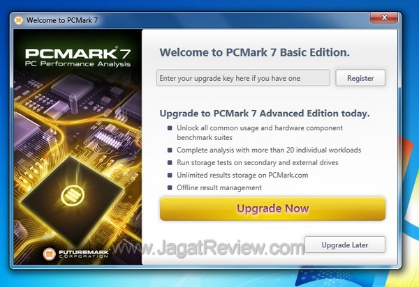 4) Free version, unlimited runs! Tidak seperti PCMark Vantage yang membutuhkan Trial Key untuk satu kali run, PCMark 7 bisa dijalankan berulang kali tanpa membutuhkan key apapun, yang Anda harus miliki hanya koneksi Internet. What more can you ask for?