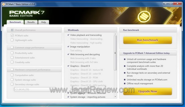 Perlu diingat sekali lagi, versi yang kami gunakan adalah versi gratisan alias Free maka cukup banyak limitasi yang kami temui. Misalnya saja kami hanya bisa menjalankan test ‘PCMark Suite’ dan kami juga tidak dapat mengganti settingnya sama sekali. Namun yang penting untuk diketahui adalah saat menggunakan versi FREE, Anda membutuhkan koneksi Internet untuk dapat melihat hasil dari benchmarknya.
