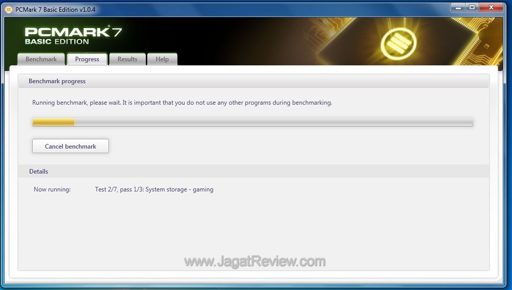 1) Waktu pengujiannya yang relatif singkat dibanding PCMark Vantage, total waktu pengerjaan dari awal test hingga selesai kurang lebih 20 menit di sistem kami.