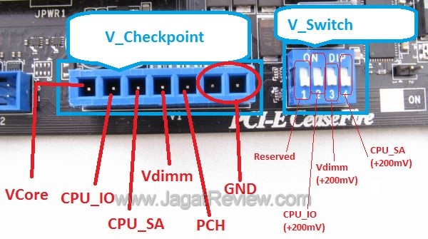 1) kami mendapati jika user melakukan setting RAM ke DDR3-2133 dan membiarkan setting CPU_IO Voltage pada BIOS di AUTO, maka board ini akan mensetting voltage CPU_IO sebesar 1.35V. Jika dalam keadaan ini Vswitch bagian CPU_IO diaktifkan, maka total voltage yang ada pada CPU_IO adalah 1.55V, sangat berbahaya bagi CPU Anda! Maka JANGAN sekali-kali menyalakan V-Switch ini kecuali Anda tahu benar apa yang dilakukan.