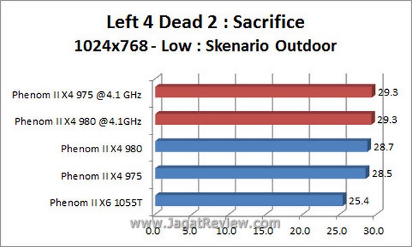 Pada benchmark gaming ini, terlihat performa semua prosesor yang kami uji berbeda tipis. Walaupun pada test skenario outdoor yang kami nilai cukup membebani sistem, Phenom II X6 1055T sedikit tertinggal dari pesaingnya. Dari hasil ini, kami dapat menyimpulkan kalau clock speed tinggi lebih penting dari jumlah core, terutama pada aplikasi gaming.