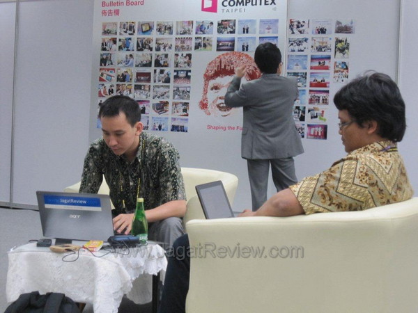 Membludaknya artikel hari ini tentu saja memiliki harga yang harus kami bayar. Hari ini terpaksa kami tidak makan siang dan sering berkutat di ruang press Computex 2011 demi mengirimkan banyak bahan liputan ke Home Team di Jakarta. Begitu banyak informasi yang harus dikirim dan waktu kami sangat terbatas! Nampaknya tujuh orang masih belum cukup juga! Apalagi kami harus berjuang mendapatkan meja di press room yang selalu penuh. Bahkan, beberapa di antara kami harus puas dengan kursi sofa tanpa meja untuk mengetik dan mengirim berita.