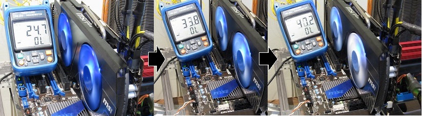 Smart Temp Sensor Tech sedikit lebih unik. MSI memberi coating khusus di fan yang digunakan sehingga saat suhu ambient casing meningkat, warna fan yang semula biru akan perlahan-lahan berubah menjadi putih dan memperingatkan para user bahwa suhu casingnya tinggi (40C ++). Perubahan warna terjadi seperti di bawah ini: