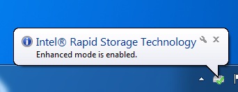 3) Akhirnya, jika langkah-langkah di atas dilakukan dengan benar, Anda akan mendapat notifikasi bahwa SRT sudah aktif dan tab “Accelerate” dari Rapid Storage control panel akan terlihat sebagai berikut: