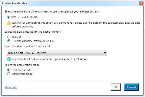 Perlu diingat, mode Enhanced akan membuat SSD Anda berjalan sebagai “Write-Through Cache”, di mana semua operasi write akan berlangsung di SSD dan HDD utama secara bersamaan. Sedangkan, di mode Maximized , SSD Anda beroperasi sebagai “Write-Back Cache”, di mana data akan ditulis ke SSD terlebih dahulu sebelum pindah ke HDD.