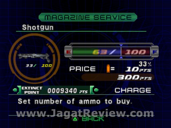 Apa yang menyebabkan Dino Crisis II menghadirkan kesan action yang lebih kental dibandingkan survivor? Pada dasarnya, game ini hanya meminta untuk menembak setiap dinosaurus yang ada tanpa perlu memerhatikan hal lain apa pun. Anda tidak perlu mencari amunisi karena Anda bisa membelinya di Shop dengan harga yang murah. Takut terpaksa melakukan reload di saat genting? Tenang saja, peluru-peluru itu dapat muntah dengan kecepatan tinggi dari moncong senjata tanpa terhambat apa pun bahkan reload sekali pun.
