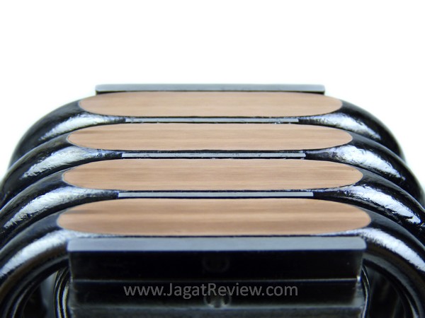 Base dari heatsink ini menggunakan desain Heatpipe Direct Touch atau yang sering disebut dengan H.D.T. Salah satu teknologi yang diunggulkan oleh Xigmatek karena panas prosesor langsung berpindah ke heatpipe. Finishing pada base HDT ini memiliki alur-alur halus seperti yang tampak pada gambar. Yang perlu diperhatikan pada saat mengaplikasikan thermalpaste pada base dengan desain seperti ini adalah jumlah thermalpaste yang akan sedikit lebih boros dibandingkan dengan base non H.D.T karena banyak terdapat sela-sela tempat thermalpaste “menyangkut”.