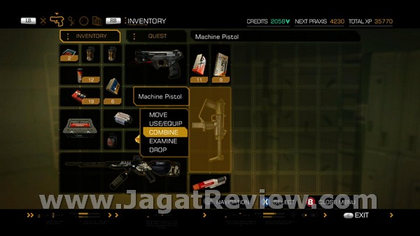 Selain Skill, Item juga memainkan peranan yang tak kalah penting. Masih ingatkah Anda dengan sistem “box” ala Resident Evil yang membuat kapasitas item terbatas? DEHR tampaknya mengadopsi sistem yang tidak jauh berbeda. Dengan limitasi tempat ini, Anda harus dengan bijak memilih item-item yang dibutuhkan. Untuk apa membawa begitu banyak peluru ketika Anda lebih mengutamakan sisi stealth? Harus diingat juga, bukan berarti stealth tidak membutuhkan senjata-senjata tertentu untuk digunakan. Anda juga bisa mengombinasikan beberapa item untuk mendapatkan sebuah item yang lebih kuat, sebagian besar untuk senjata.