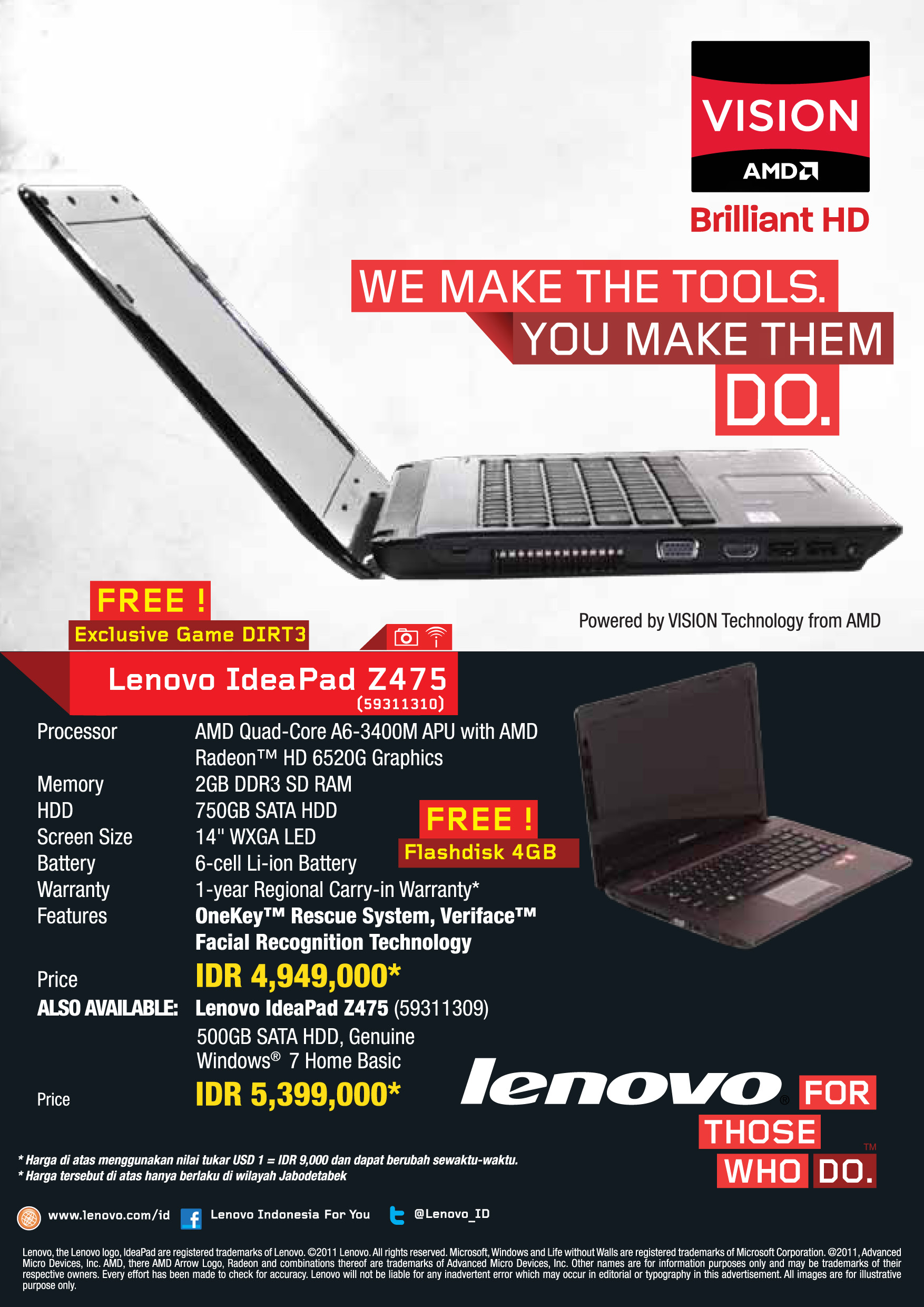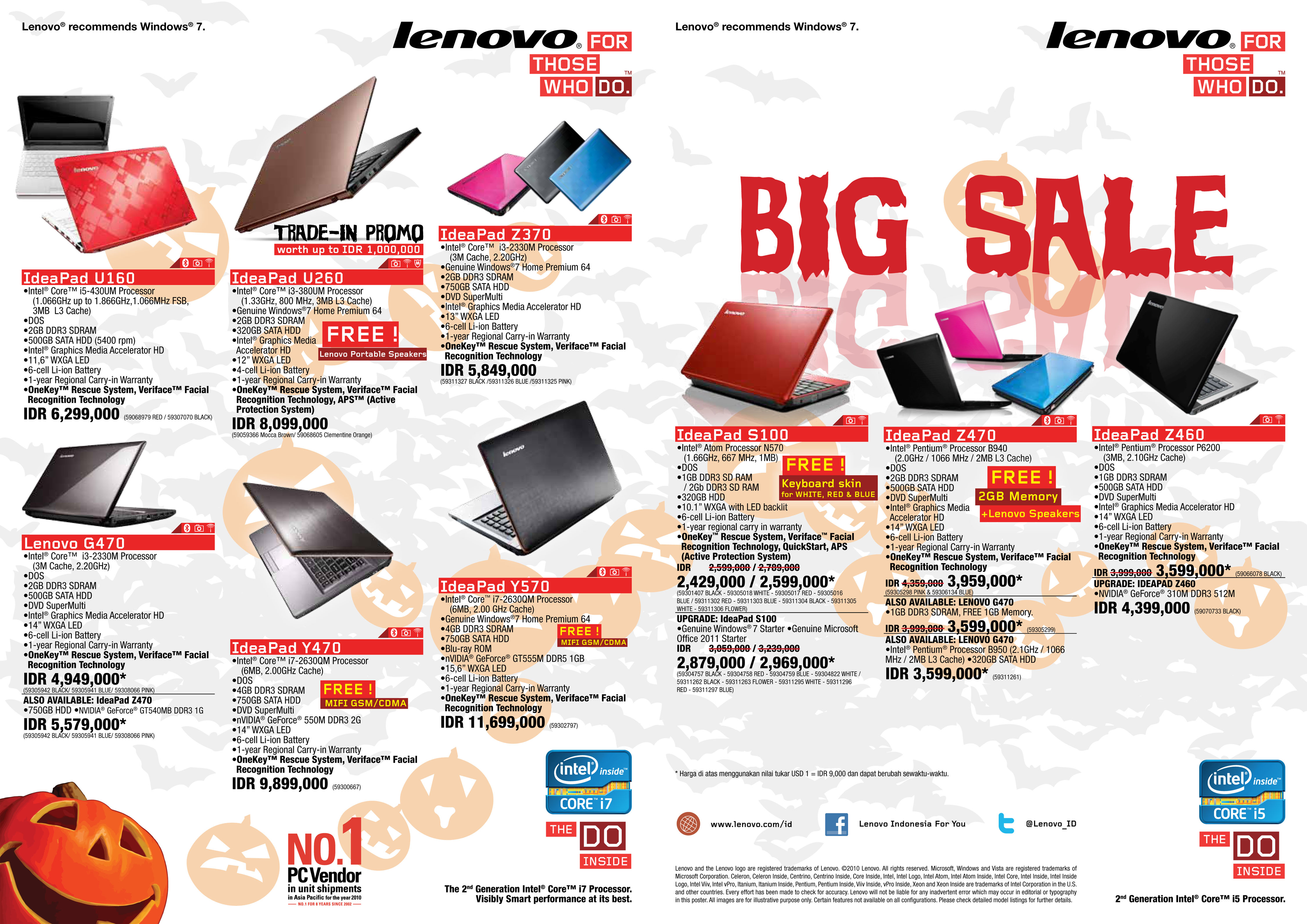IdeaPad Z370 (i3-2310M, 500 GB HDD): Rp5.269.000,- menjadi Rp4.769.000,-
