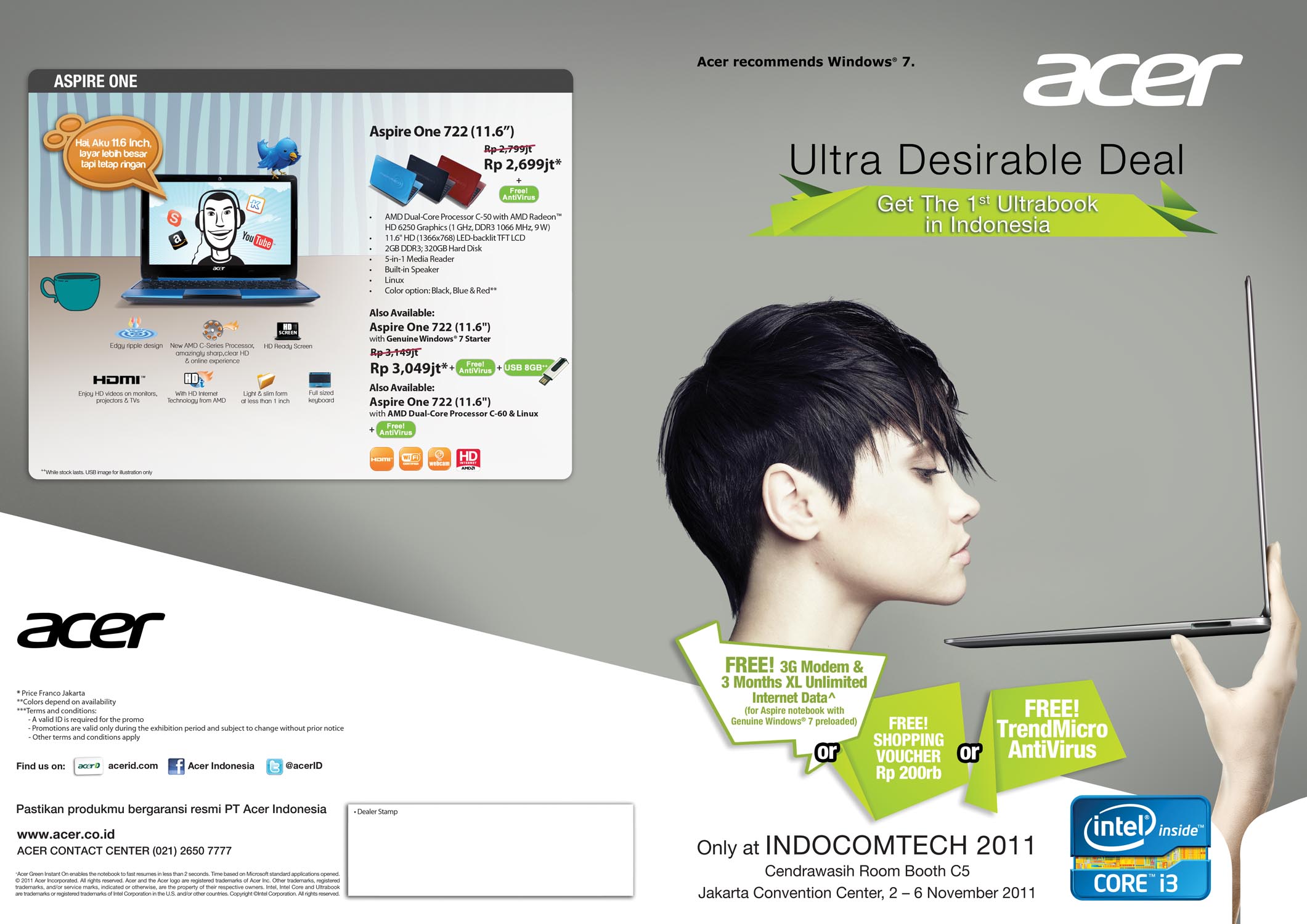 Aspire One 722 : Rp2.699.000 – (+ free antivirus)