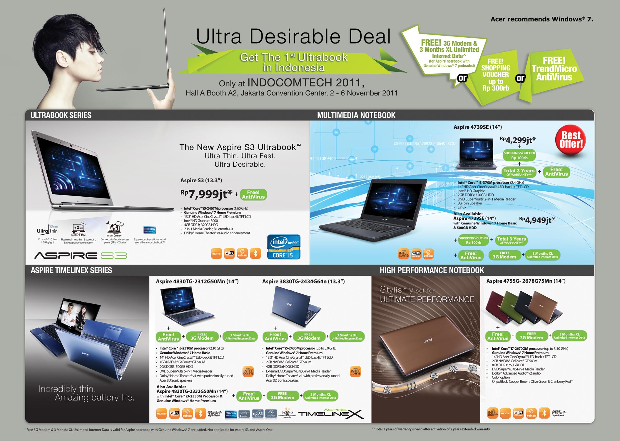 Aspire S3 Ultrabook : Rp7.299.000 ,- (+ free antivirus)