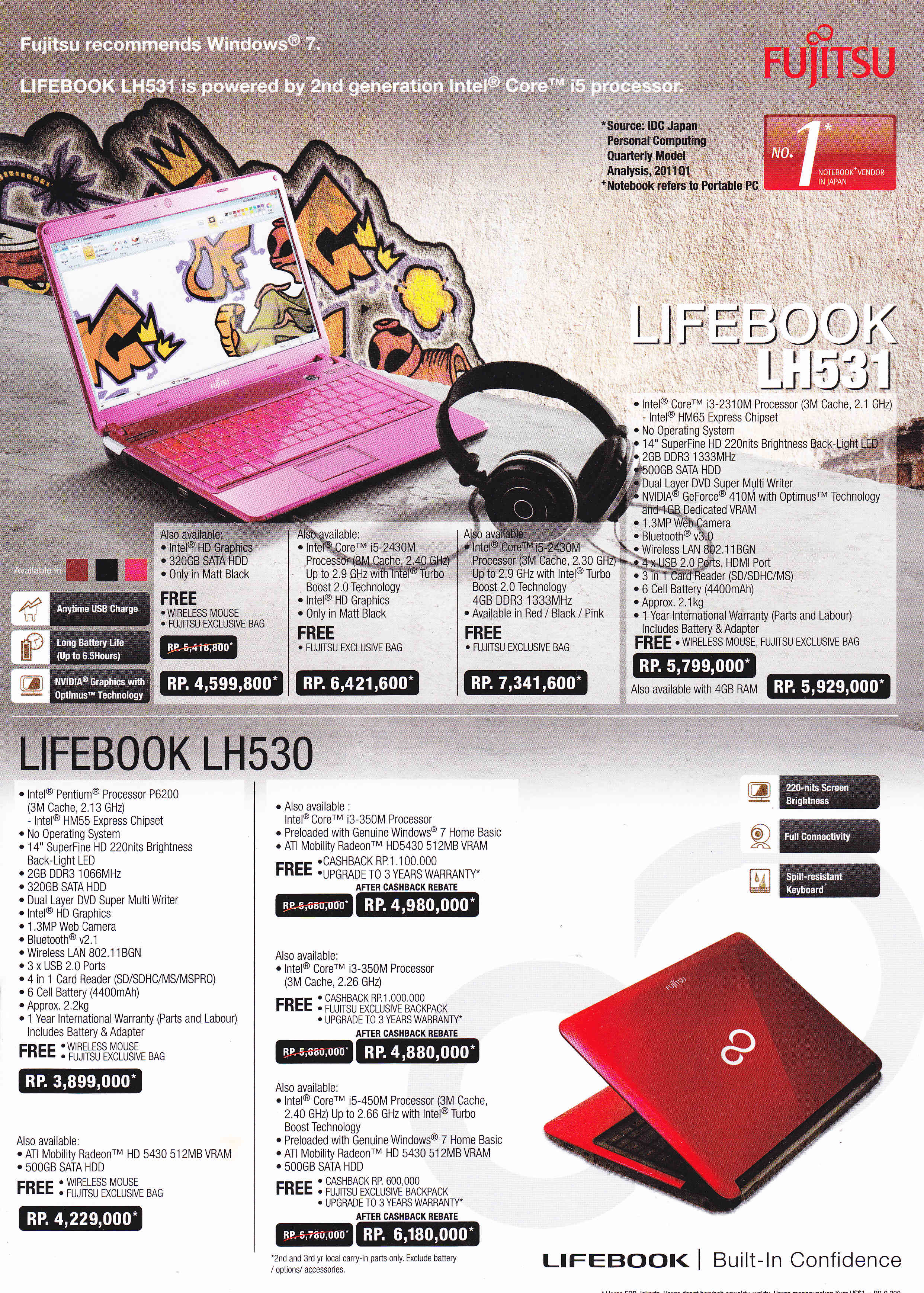 Lifebook LH530 (i3-350M, Windows 7 Home Basic, ATI Radeon HD 5430): Rp 6.080.000,- menjadi Rp 4.980.000,-