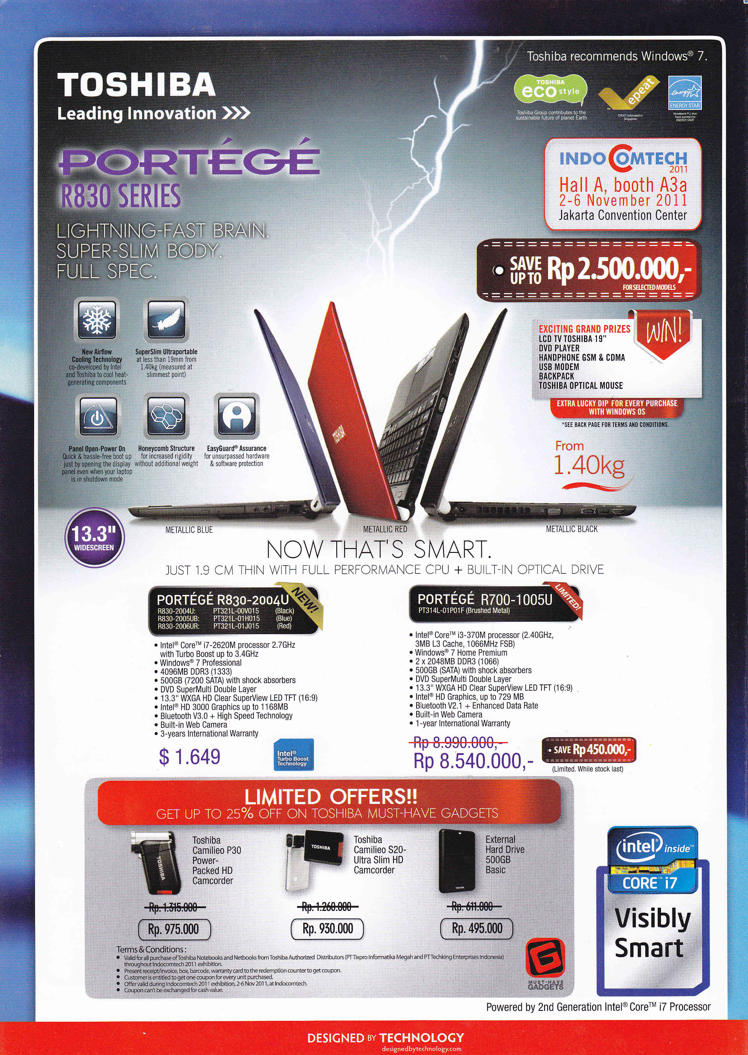 Portege R700-1005U: Rp 8.990.000,- menjadi Rp 8.540.000,-