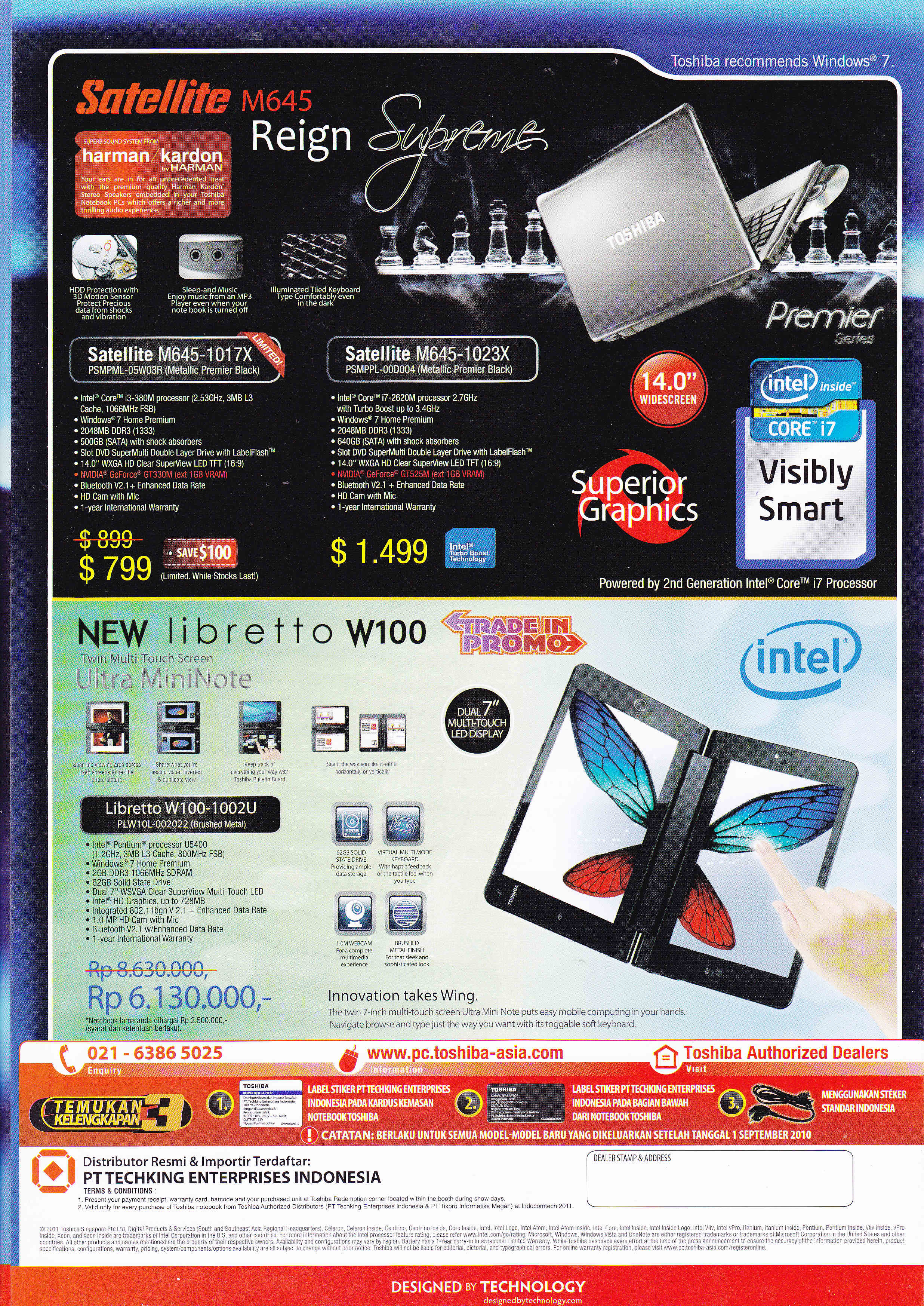 Satellite L735-100zXB: USD 969 menjadi USD 879