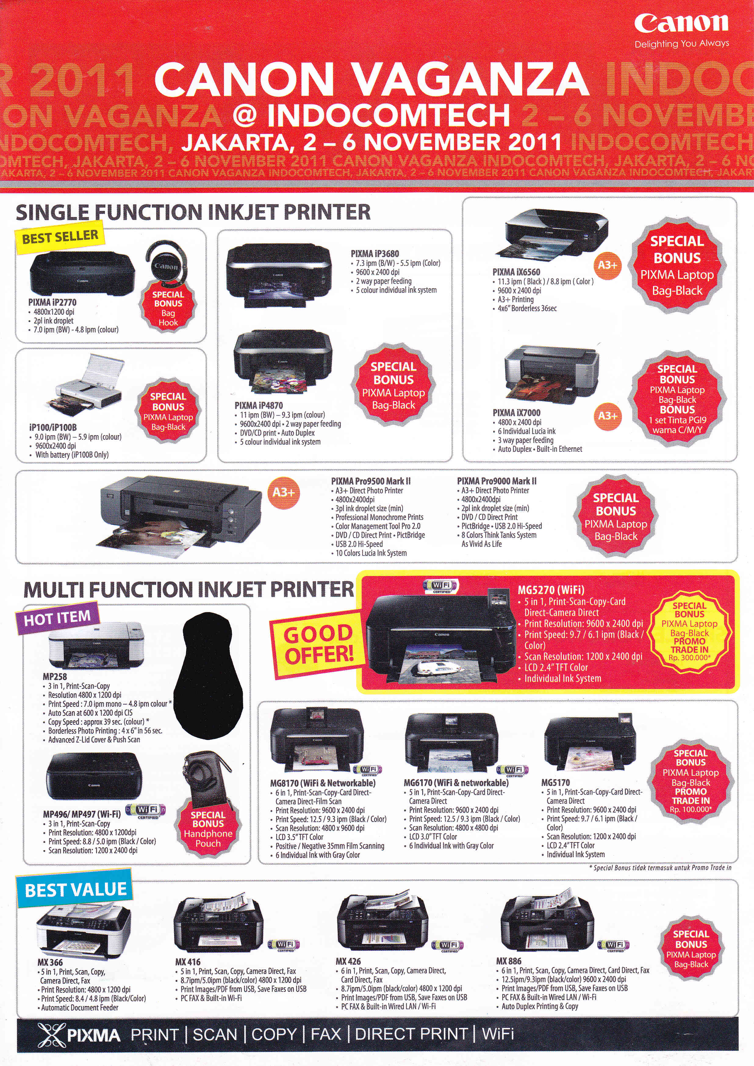 Canon Printer menyediakan beragam promo seperti free merchandise dan cash back untuk beberapa produk tertentu.