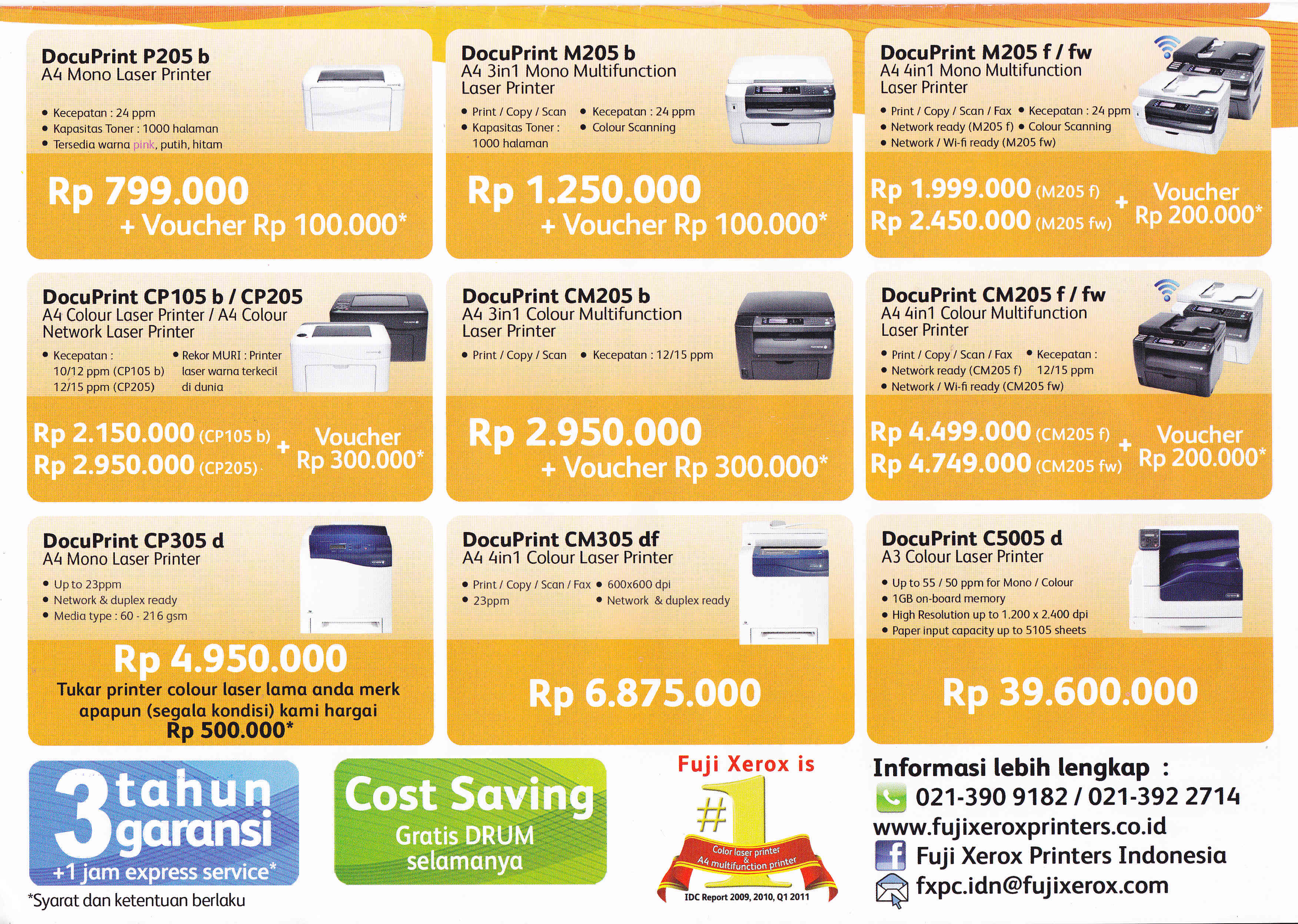 - DocuPrint CP205: Rp 2.950.000,- (+Voucher Rp 300.000,-)