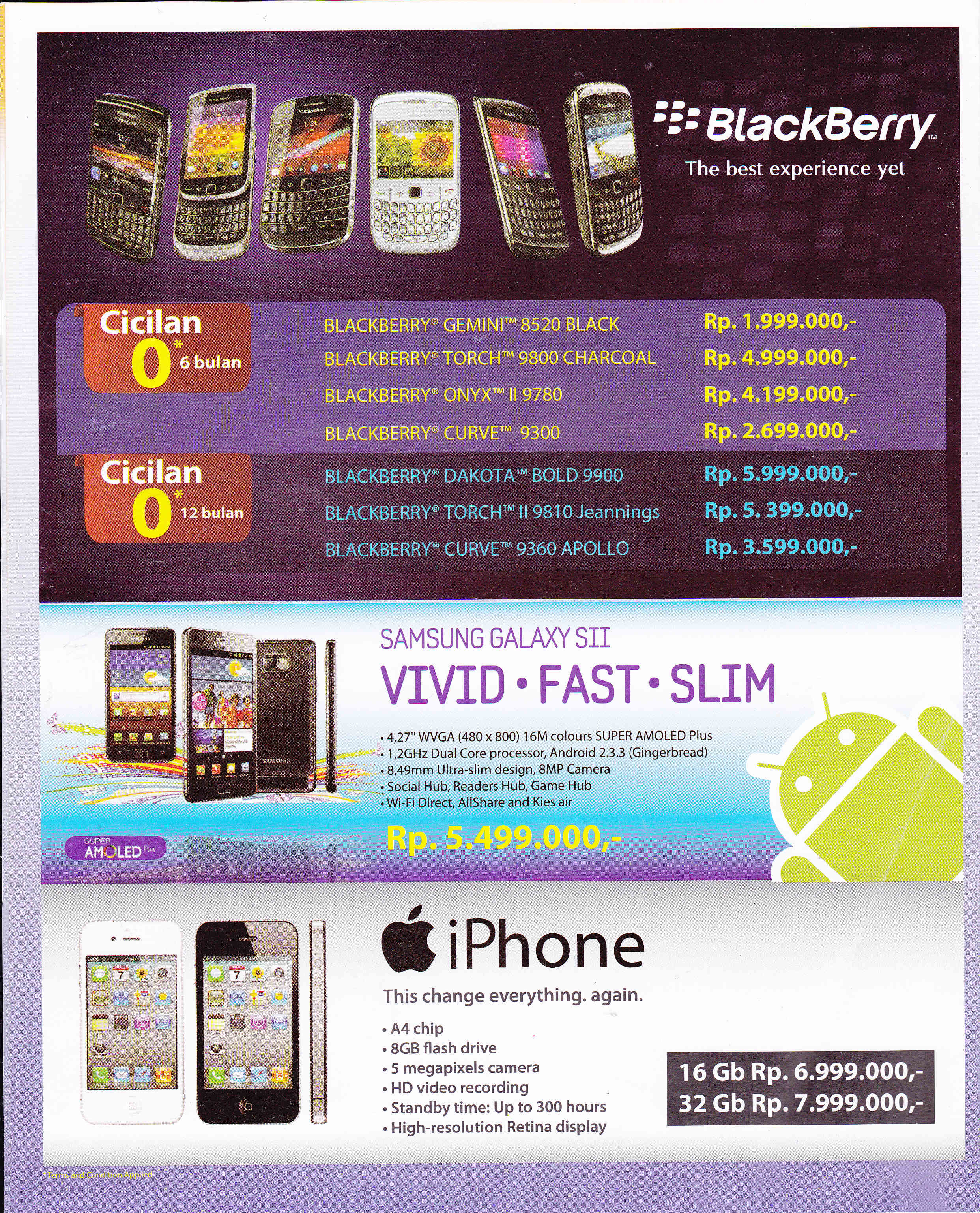 - Blackberry Apollo: Rp 3.400.000,- (Gratis BIS 12 Bulan)