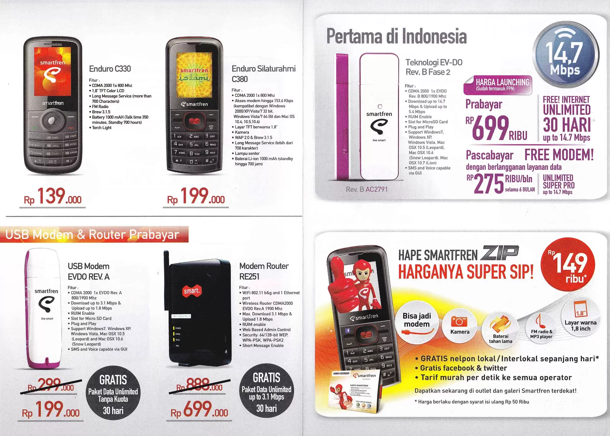 - SmartFren ZIP: Rp 149.000,-