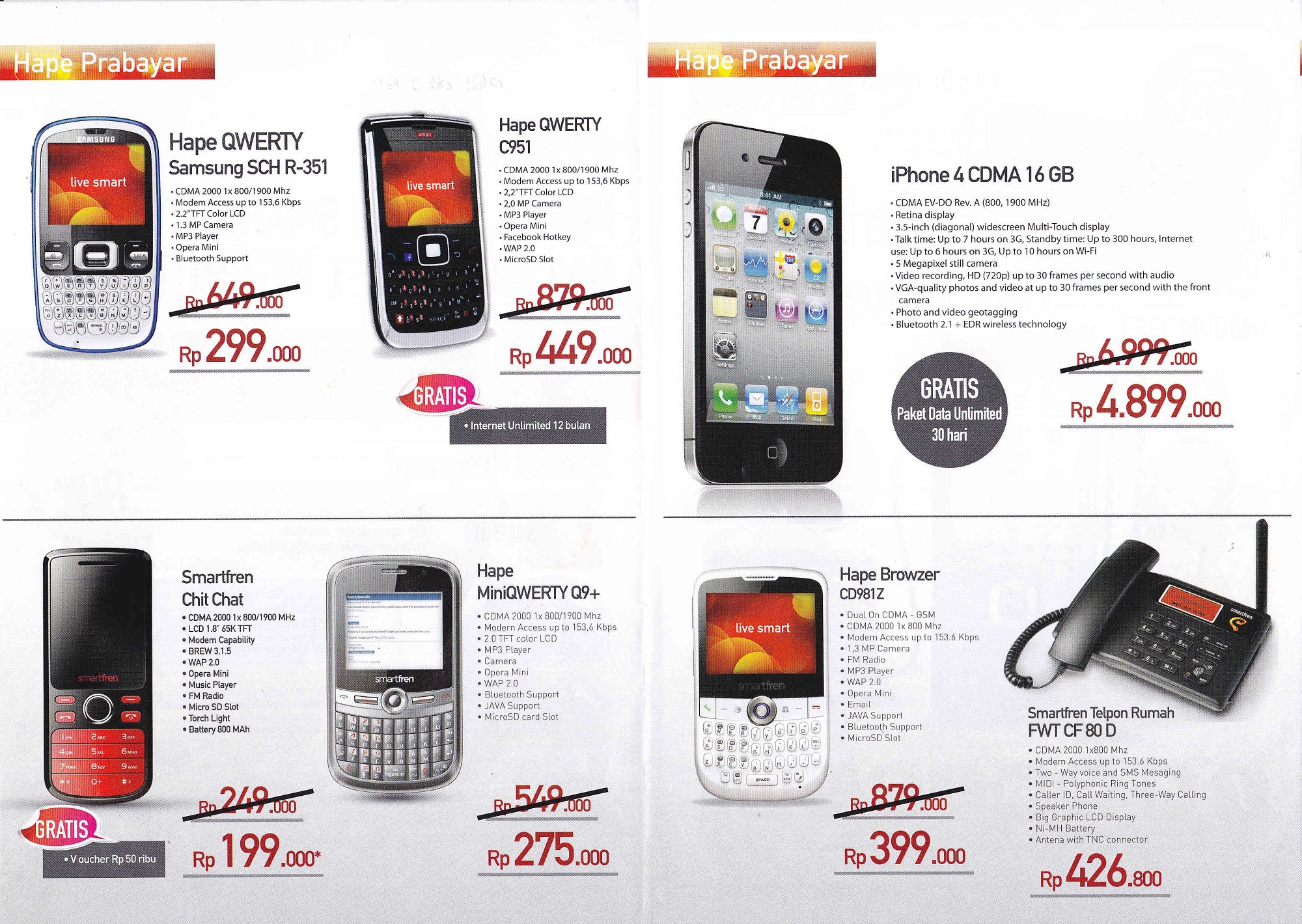 - iPhone 4: Rp 6.999.000,- (Gratis Internet 12 Bulan)