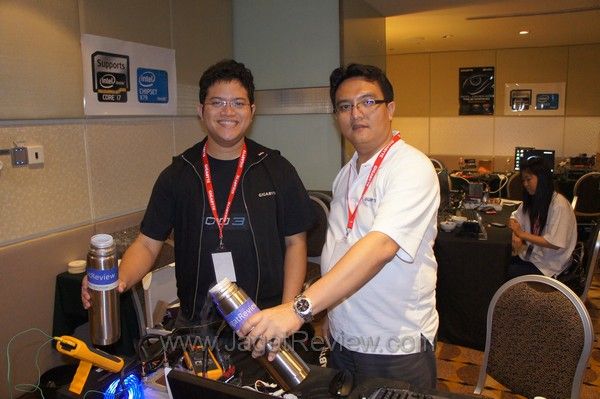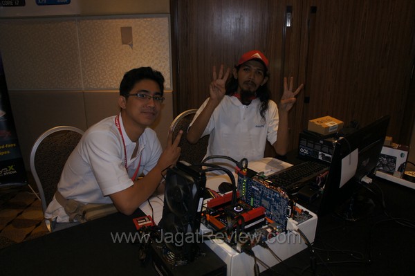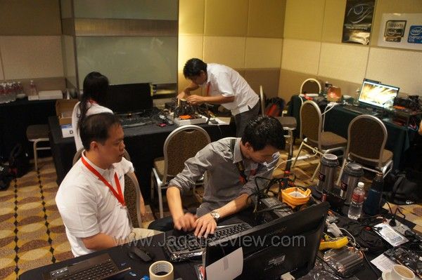 Pada saat yang bersamaan, cukup jarang peserta lain yang mempersiapkan sistemnya untuk didinginkan dengan Liquid Nitrogen. Sejauh yang kami amati, hanya peserta dari Indonesia dan Singapura yang mendinginkan sistem menggunakan LN2. Hal ini cukup wajar mengingat platform yang dipakai (Sandy Bridge-E dan X79) merupakan platform yang sama sekali baru sehingga banyak yang ingin menguji sistem ini dengan Air/Liquid Cooling.