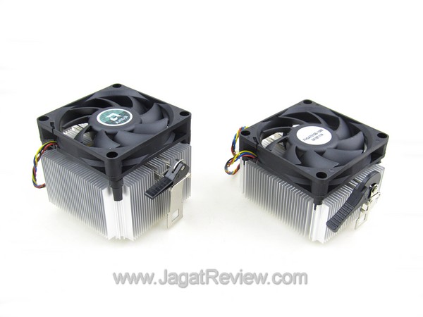 Kemasan prosesor AMD FX ini tidak jauh berbeda dari kemasan prosesor AMD sebelumnya, yang menjadi pembeda utama adalah warna box AMD FX yang putih, bukan hitam seperti rata-rata prosesor AMD yang unlocked/Black Edition. Perbedaan kedua kami temukan dalam hal cooling bawaan CPUnya. Berikut ini perbandingan antara cooling bawaan AMD FX-4100 dan AMD Phenom II X2 560BE.