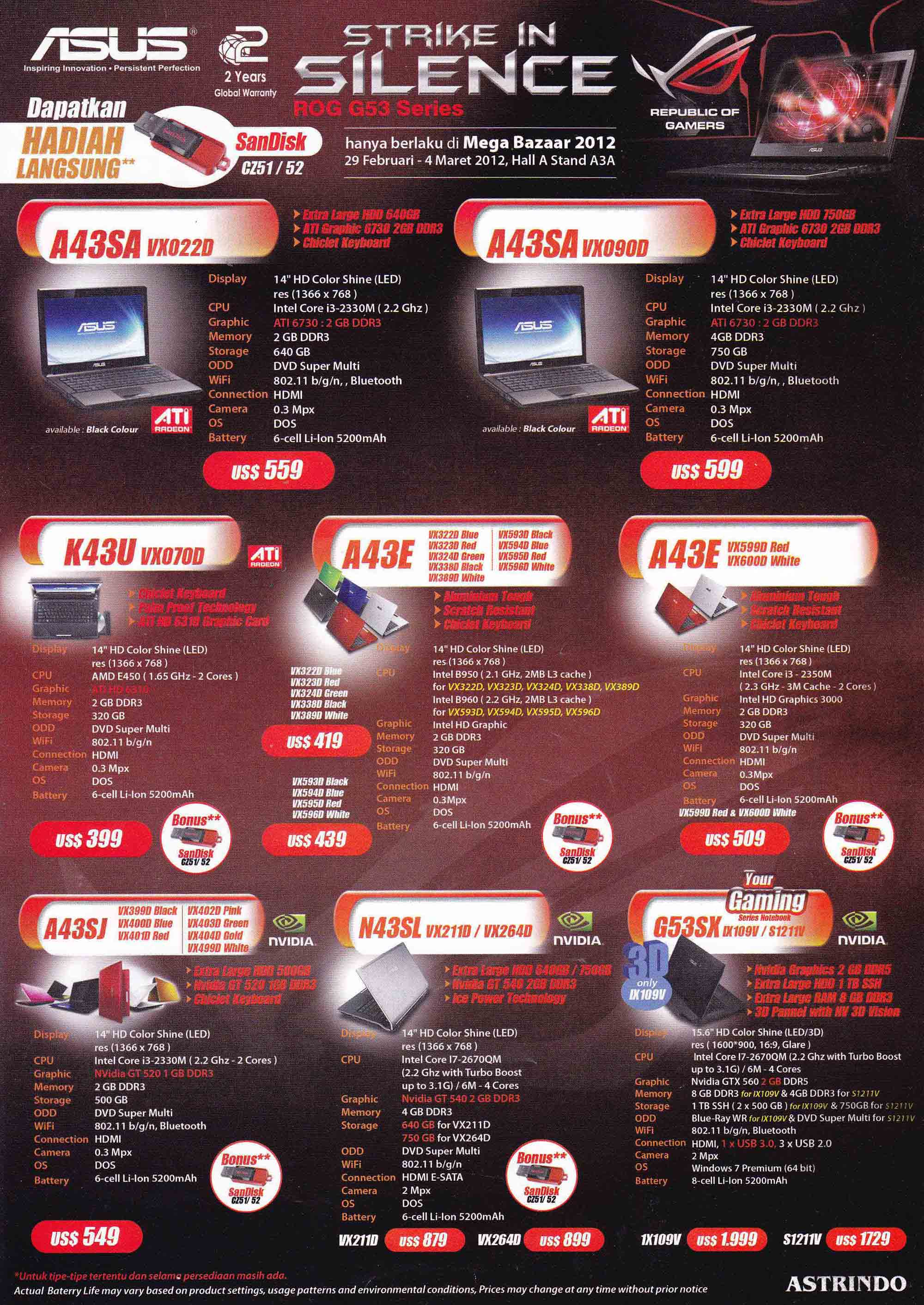 K43U VX070D: USD 399 (Bonus SanDisk)