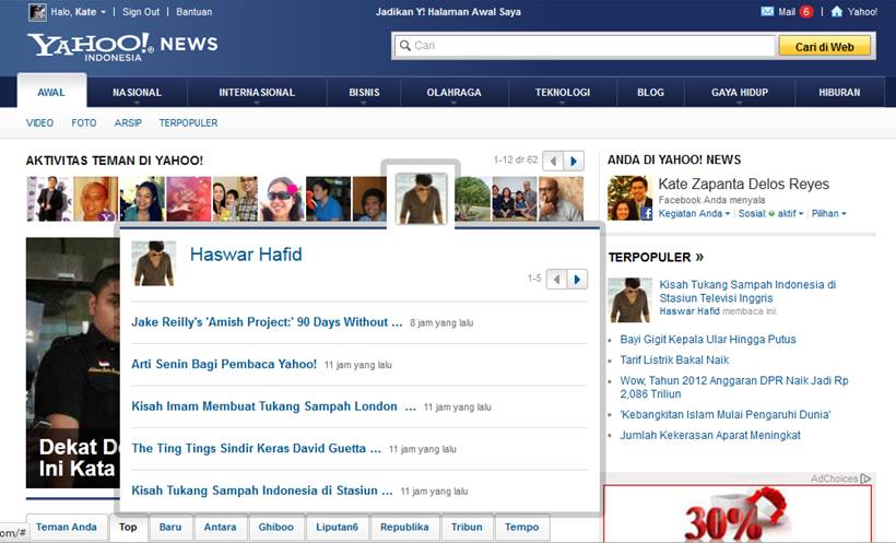 Yahoo! sebagai perusahaan media digital terkemuka di dunia baru-baru ini menambahkan pengalaman sosial ke dalam konten portfolio mereka di Indonesia, khususnya untuk Yahoo! News, Yahoo! OMG, dan Yahoo! She. Pengalaman sosial ini ditambahkan melalui feature “Beranda Sosial” atau yang dikenal di Amerika Serikat dengan sebutan “Social Bar”. Feature ini merupakan wujud perluasan integrasi yang dilakukan Yahoo! dengan Facebook.