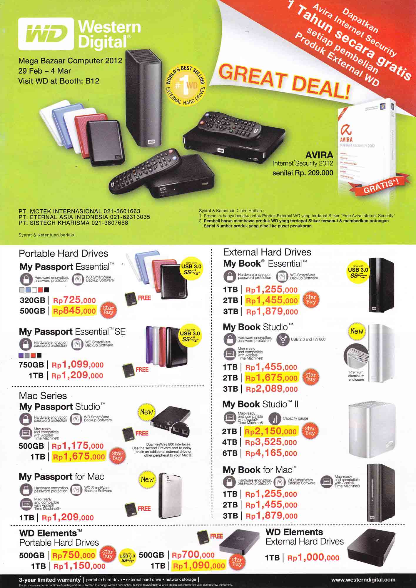 - My Book Live 3 TB: Rp 2. 145.000,- menjadi Rp 2.100.000,- (Gratis Avira)