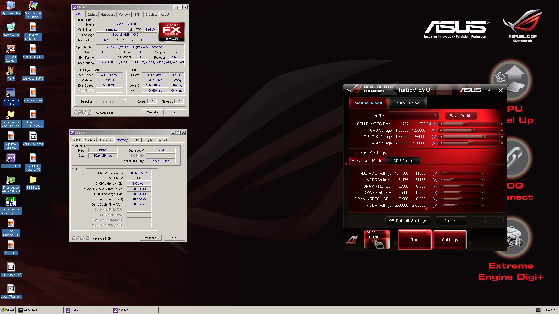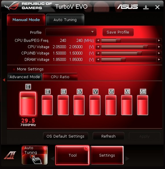 Sisanya diset AUTO, lalu di-tweak lebih lanjut menggunakan utility ASUS Turbo-V EVO pada OS.