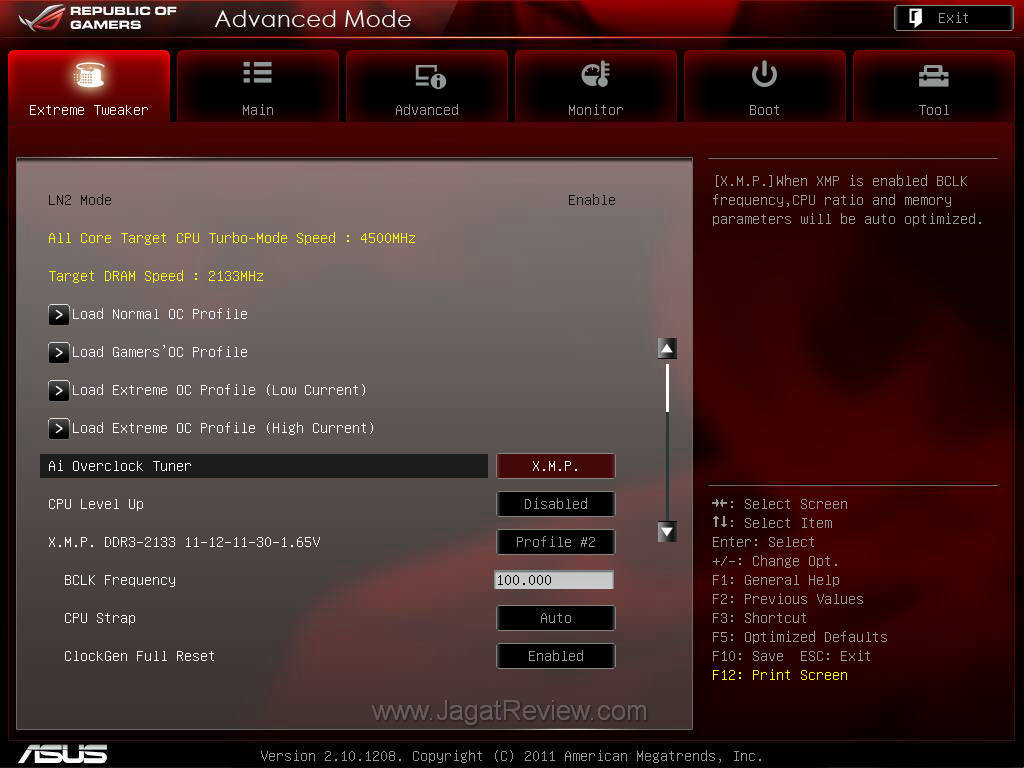Kami hanya men-setting VRM kami untuk menghadapi extreme OC, lalu memuat Profil XMP dari RAM kami, kemudian men-set CPU multiplier ke 45 untuk boot. Sisanya akan kami ubah di OS melalui TurboV EVO ataupun OC Key.