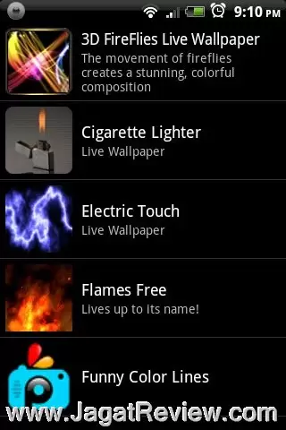 Bagi Anda yang menyukai api atau pengoleksi lighter, mungkin wallpaper yang satu ini bisa menjadi representasi Anda di perangkat HTC Aria Anda. Wallpaper ini menampilkan gambar pemantik api dengan api yang menyala cukup besar. Gerakan animasi terlihat di nyala api yang bergoyang-goyang. Sayangnya, wallpaper ini tidak didesain untuk aksi interaktif.