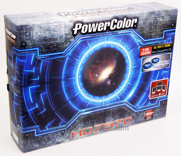 Kemasan PowerColor HD 7970 (V2) terlihat begitu futuristik dengan menggunakan desain mata robot memandang lurus ke arah galaksi.
