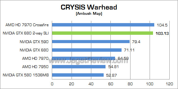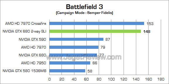 Di game ini, performa GTX 680 SLI melesat sekitar 68% lebih kencang di atas single-GTX 680.