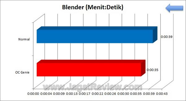 Blender merupakan aplikasi “open source” untuk 3D-modelling. Kami menguji kinerja prosesor dalam merender objek 3D di aplikasi ini. Hasil pengujian disajikan dalam satuan waktu. Semakin sedikit waktu yang dibutuhkan, semakin baik.