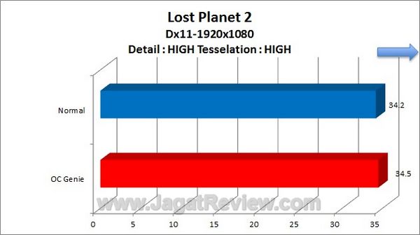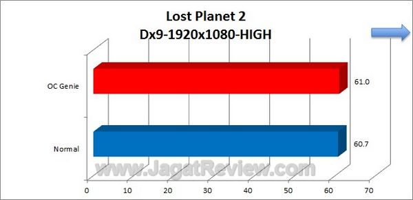 Lost Planet 2 adalah salah satu game 3rd person action yang cukup populer di pasaran. Maka dari itu kami menggunakan game ini sebagai salah satu barometer performa bagi pengujian hardware. Pengujian kami lakukan di mode DirectX 9.0 dan DirectX 11.0 menggunakan benchmark internal dari game ini sendiri.