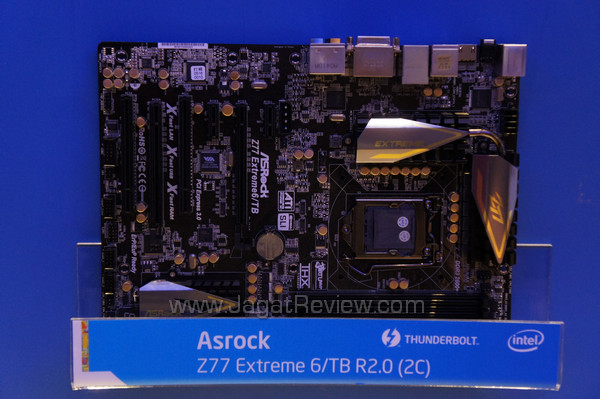Di dalam chipset Z77 terdapat jalur PCIe khusus yang dapat dialokasikan untuk penggunaan interface Thunderbolt. Oleh karena itu beberapa produsen motherboard mulai menyertakan konektor Thunderbolt di motherboard Z77 mereka. Berikut ini adalah beberapa tipe motherboard yang telah menyertakan interface Thunderbolt. (*klik gambar untuk memperbesar)