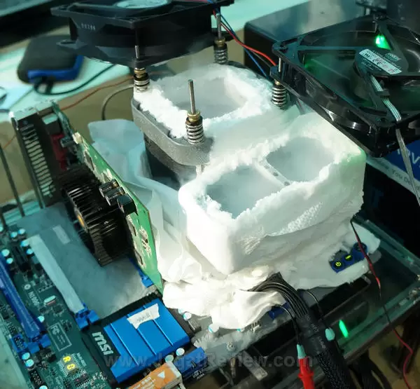Extreme overclocking tentunya melibatkan peralatan extreme cooling seperti LN2 container(pot) untuk CPU ,GPU , atau bahkan RAM. Peralatan extreme cooling yang berkualitas akan membantu para extreme-overclockers menjaga temperatur sistem mereka saat perubahan dari keadaan idle ke load. Untuk itu, tim JagatOC memilih LN2 Container buatan k|ngp|ncooling. Secara total, tim jagatOC menggunakan 3(tiga) macam LN2 Pot yang berbeda : Dragon F1 Extreme Dark untuk CPU, Tek-9 FAT 6.o untuk GPU, serta Dominance Memory Cooler untuk memori.